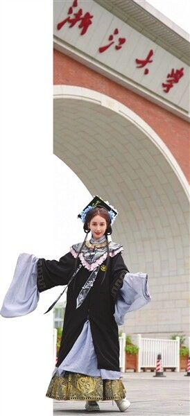 “礼仪之大,故称夏;服章之美,谓之华”。2024年5月的毕业典礼上,安心冉内搭浙大标准毕业服,外披重工刺绣云肩,下着马面裙,头戴手工DIY簪花四方帽,以一套“国风毕业照”,登上了社交媒体的热搜。