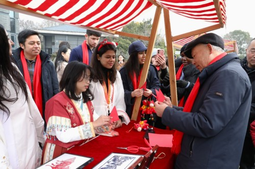 “在我们国家的新年里,我们会穿上节日盛装互相拜访,赠送礼物。”俄罗斯留学生马思思表示。外国留学生们来到南通博物苑研学活动中心,共话新年年俗。志愿者详细介绍了拜年、贴春联、挂灯笼等中国春节传统习俗,留学生们也踊跃分享本国的新年特色,不同文化的碰撞与交流在此刻绽放光彩。随后大家共同体验中国结手工制作,穿绳、打结、编织,将满满的新春祝福系在一个个精致的中国结之中。“我自己动手做的中国结真的太美了,我要将它带回去挂在窗边。”来自孟加拉国留学生刘昊说。