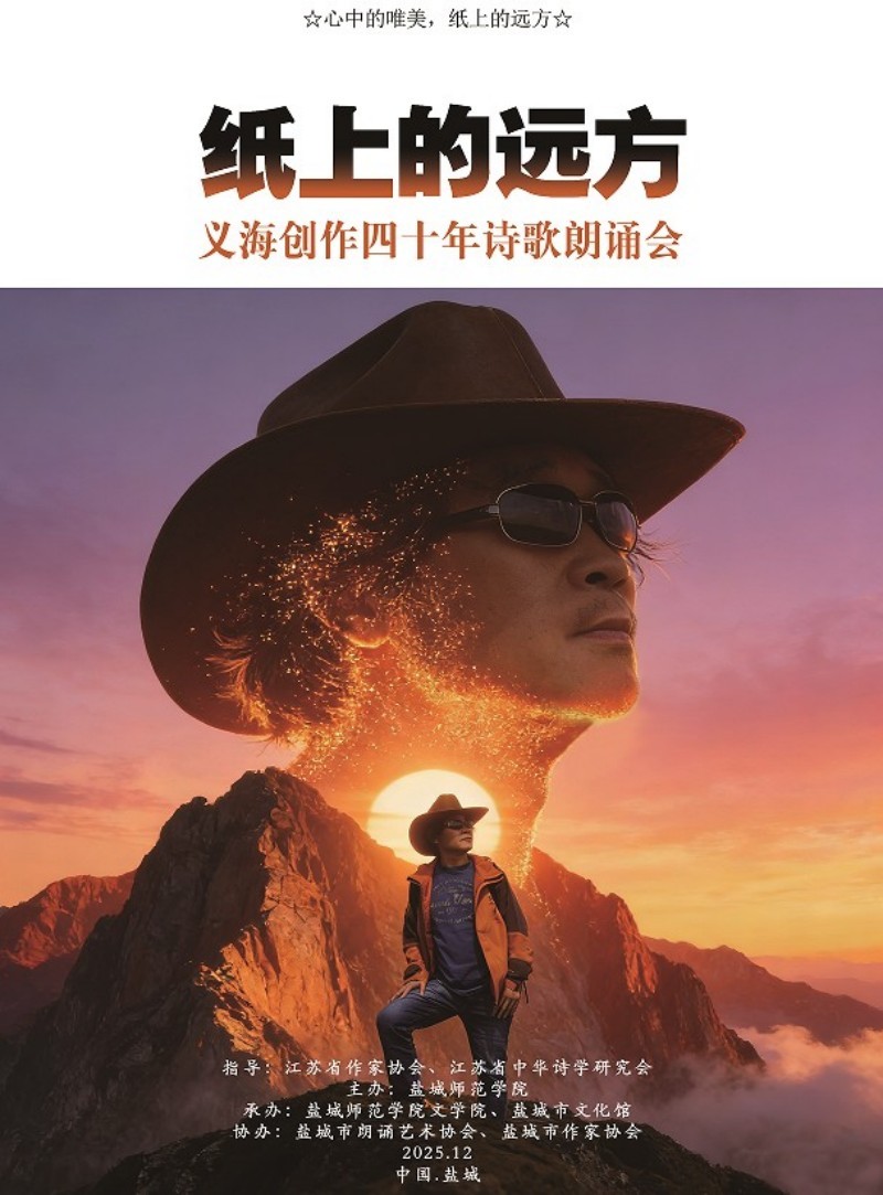 “一路歌唱,一路芬芳”。为回顾著名双语诗人、诗评家、翻译家义海四十多年的创作实绩,一场以“心中的唯美,纸上的远方”为题旨的“义海创作四十年”诗歌朗诵会,12月14日下午在盐城市文化群星剧场隆重举行。省内外朗诵名家齐聚一堂,朗诵了义海四十多年的代表性作品近三十首。
