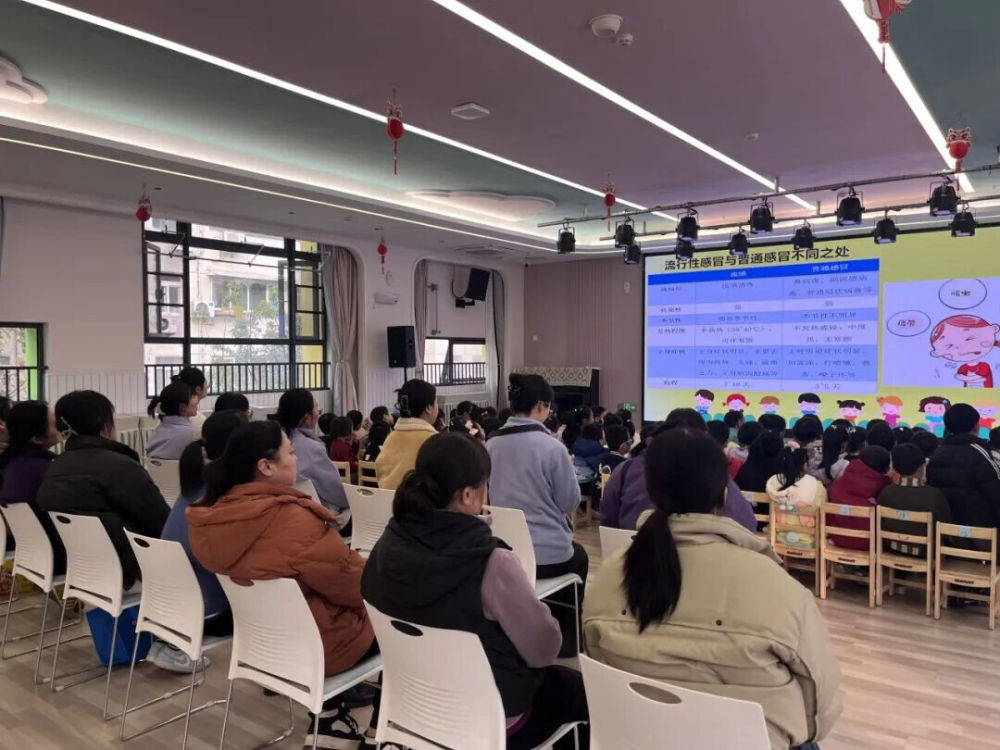 冬季季节流感高发,为切实保障宝贝们的身体健康,筑牢校园健康防线,2025年12月11日,合肥市长江路幼儿园佳和分园特别邀请亳州路社区医院的李晶医生走进校园,为幼儿、教师以及保育员开展了一场专业又有趣的流感防控专题培训活动。