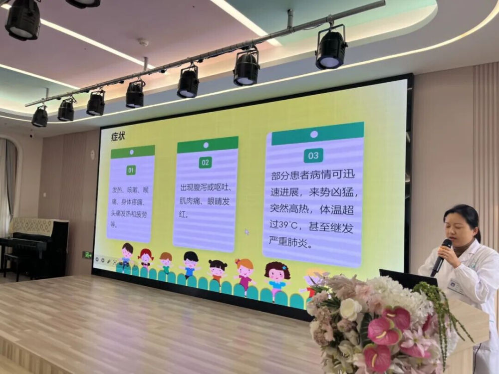 考虑到教师是幼儿日常健康的“守护者”,李医生还专门针对教师群体,强调了幼儿园日常防疫工作的核心举措。她着重从日常防控细节、环境卫生规范消毒、教职工防控专项培训以及幼儿健康宣教技巧这几个关键方面,系统带领在场师幼共同学习,帮助大家清晰掌握防疫要点,筑牢校园流感防护屏障。