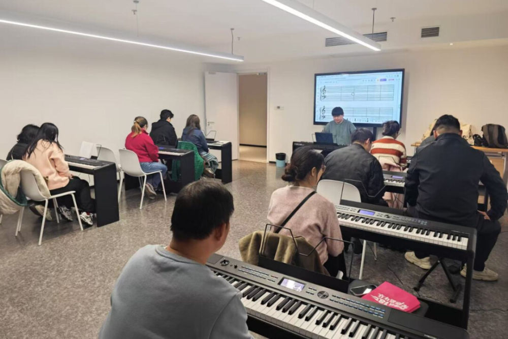 古朴的琴音还在悠悠回荡,其他课程也已陆续展开。瑜伽教室里,学员们随着轻柔的指令舒缓伸展,在呼吸间释放着身心的压力;电子钢琴课上,跳跃的音符从一排排琴键上流淌而出,一点点编织出优美的旋律;合唱教室里,渐趋和谐的混声展现出集体艺术的魅力;美妆课堂上,老师细致演示日常妆容技巧,学员们专注跟学,现场气氛活跃而温馨。
