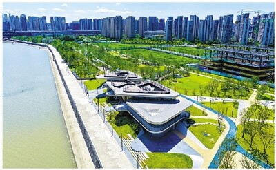 此次活动的举办地钱岸公园为省扩大有效投资“千项万亿”工程重大建设项目——杭州市本级海塘安澜工程(三堡至乔司段)一期项目的建筑景观部分。公园西起彭埠大桥、东至和睦港,总面积约27万平方米,由御道城市公园、五堡草坪公园、六堡运动公园及七堡艺文公园4个主题公园组成,串联起5座特色建筑及滨水慢行系统、活力球场、儿童游乐装置等配套设施,构建可观景、可休闲、可娱乐的滨水生态潮岸。