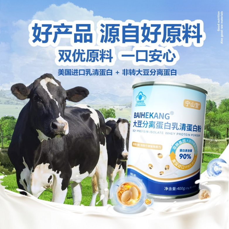 核心成分与功能机制:宁山堂蛋白粉秉持科学膳食理念,建立双蛋白营养体系。核心选用非转基因大豆分离蛋白及进口浓缩乳清蛋白,经黄金比例调和达成协同增效,融合营养完整性与利用高效性,主要功效体现在: