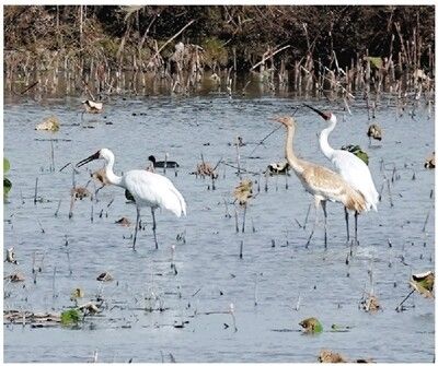 11月27日上午,一对白鹤带着一只尚未成年的小鹤现身余杭南湖的荷塘,被幸运的观鸟爱好者发现,在远处架起“大炮筒”,频频按下快门。白鹤属大型迁徙涉禽,主要栖息于开阔的沼泽草地、湖泊岸边及浅水湿地,成年白鹤通体羽毛洁白,脸上裸皮红色,身高在130厘米至140厘米,正常寿命可达70多岁,在中国历来被赋予吉祥、长寿的美好寓意。全球白鹤原有三个种群,分别按中、西、东三条路线迁徙,在过去20多年里,中部和西部种群几乎灭绝,只剩下途经中国的东部种群。据世界自然遗产保护联盟统计,目前全球范围内白鹤数量已经不足4000只,其中98%在鄱阳湖越冬。白鹤在《世界自然保护联盟濒危物种红色名录》中已被列为极危物种,在中国被列为国家一级保护动物。近年来,余杭的南湖与北湖已多次记录到白鹤停留,表明通过多年的湿地保护,南湖和北湖已成为白鹤种群东线迁徙途中的重要停歇地。
