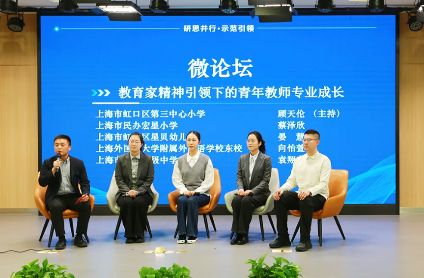 虹口区青年教师成长营成员围绕“教育家精神引领下的青年教师专业成长”带来微论坛分享。青年教师们结合“三力”沉浸式研修项目畅谈成长感悟、分享探索心得,尽显朝气蓬勃、笃行实干的精神风貌,生动展现出虹口青年教师培养工作的扎实成效。