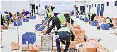 标准严苛,却难不倒经验丰富的工匠们。在砌筑竞赛区,建德代表队的选手洪承良手持瓦刀,瓦刀起落间干脆利落,将砂浆均匀铺在砖面,不时用靠尺紧贴墙面检测垂直度。“别看做这么个小东西,其实大大小小有很多规范要求,比如砖块下的砂浆要饱满,不能有空鼓,灰缝宽度也有讲究,不能太宽。”洪承良抹了抹手上的灰浆,眼神坚定,“现在有线上学习平台和线下实训基地的加持,我们定期参加理论和实操培训,技术越来越扎实,应对这样的高难度竞赛也更有底气。”