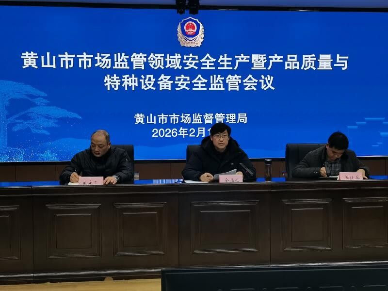 2月10日下午,黄山市市场监管局召开全市市场监管领域安全生产暨产品质量与特种设备安全监管工作会议,市局和各区县局安全生产领导小组成员参加会议。市局党组成员、副局长金灿灿参加会议,并就2026年春节假日期间的特种设备安全和产品质量安全监管工作进行再强调、再部署。