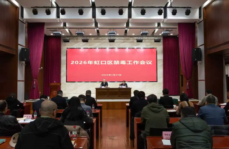 3月24日下午,2026年虹口区禁毒工作会议召开,会议传达学习了全市禁毒工作会议精神,通报并部署2026年禁毒工作。区委常委、政法委书记蒋龙出席会议并讲话,副区长、公安分局党委书记、局长黄恩伟主持会议。