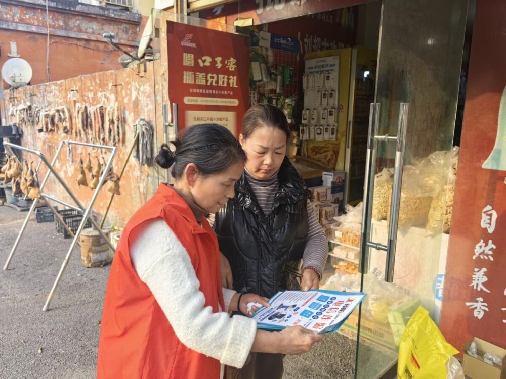 12月11日,东郊办开源社区组织志愿者向沿街商户、过往居民发放反诈宣传单页,讲解刷单返利等诈骗手段的特点和防范技巧。(东郊办 李乐)