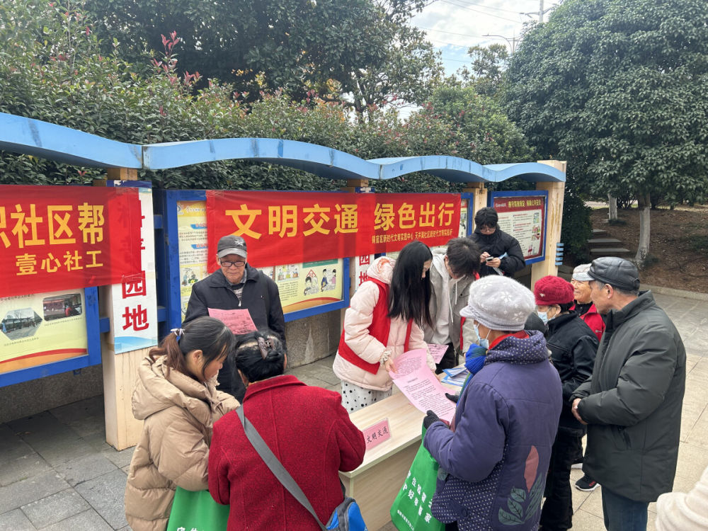 12月4日,天井湖社区开展“文明交通 绿色出行”主题活动,向过往居民深入浅出地讲解交通安全法律法规、文明规范,以及绿色出行对于环境保护的重要意义。(天井湖社区 付蓉)