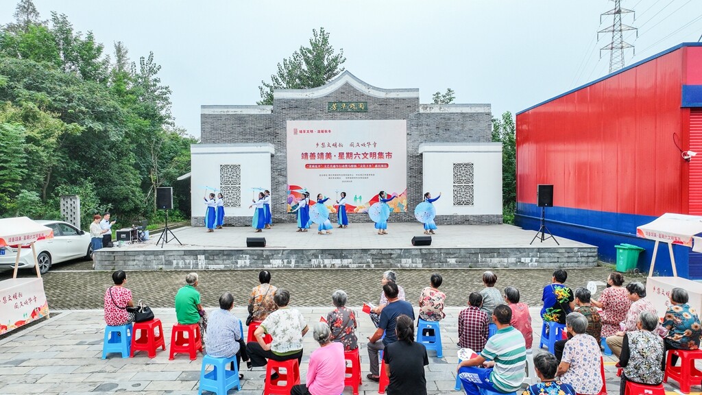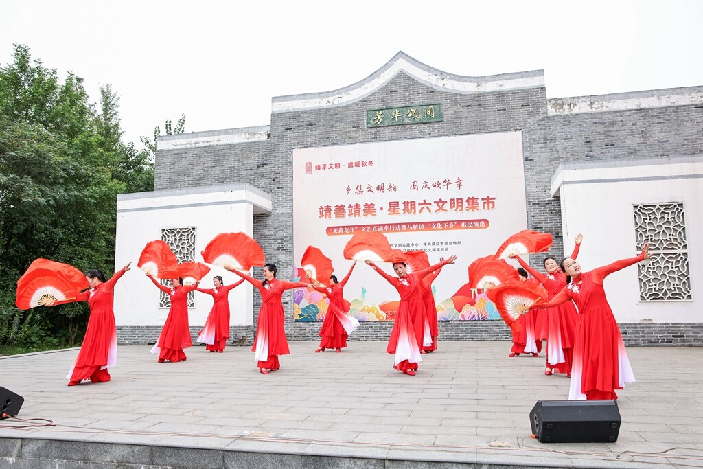 9月27日上午,马桥镇徐周村新时代文明实践站中心广场上掌声阵阵,“茉莉花开”文艺直通车带着精心编排的节目如约而至,将一场浸润红色文化、贴近百姓生活的文化盛宴送到村民身边。