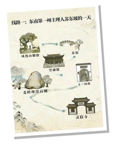 首条研学线路从凤凰山脚出发,一路经过苏堤、望湖楼、宝石山下“十三间楼”、大麦岭摩崖题记,最终抵达灵隐寺。凤凰山脚是苏东坡官舍所在地,苏堤是他治理杭州时的最大“利民工程”,望湖楼是他听雨哲思之处,“十三间楼”是他办公、会客之所,工作之余,他还到大麦岭摩崖石刻寻迹抒怀,去灵隐寺谈禅论道……线路上的点位各具特色,且具有代表性,串联起“苏东坡的一天”,呈现一条沉浸式文化体验动线。