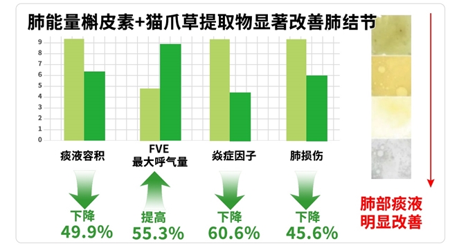 科学调理的价值离不开真实数据加持。实验调研显示,2800位用户3周期(每周期3瓶)调理后,7天内超八成出现痰液排出,30天80%咳嗽明显缓解,60天呼吸顺畅度提升,90天超80%结节压迫感减轻,多项指标全方位好转。在针对慢阻肺的临床项目中,100位患者1周喘息异感改善达95%,86%咳痰减少、81%呼吸变顺,80%胸闷改善;肺结节专项试验中,342例16周后炎症因子下降43.2%,肺容积提升32.2%,组织损伤修复率达73.2%。强大实证,不依赖主观感受,效果看得见。