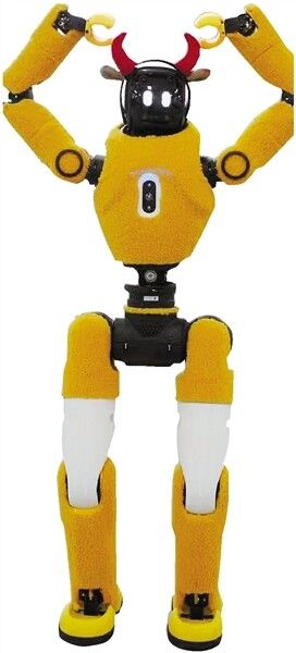 浙江大丰实业股份有限公司的子公司浙江硅基方舟机器人有限公司(以下简称“硅基方舟”)最新发布的全智能机器人,近日正式亮相滨江区大丰科创中心。它身披毛茸茸的黄色“毛衣”,头顶一对红色牛角,身后摇晃着一条俏皮的牛尾巴,造型憨萌,引人注目。