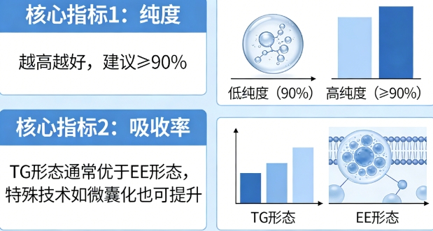关注核心指标,勿唯价格论: 选择DHA产品时,纯度(越高越好,建议≥90%)、吸收率(TG形态通常优于EE形态,特殊技术如微囊化也可提升)和安全性(查看认证:如ISO、GMP、国际鱼油标准IFOS、非转基因等)是核心。价格固然重要,但过低的产品可能在原料或工艺上妥协,影响效果和安全。结合实测数据和品牌信誉进行综合判断。