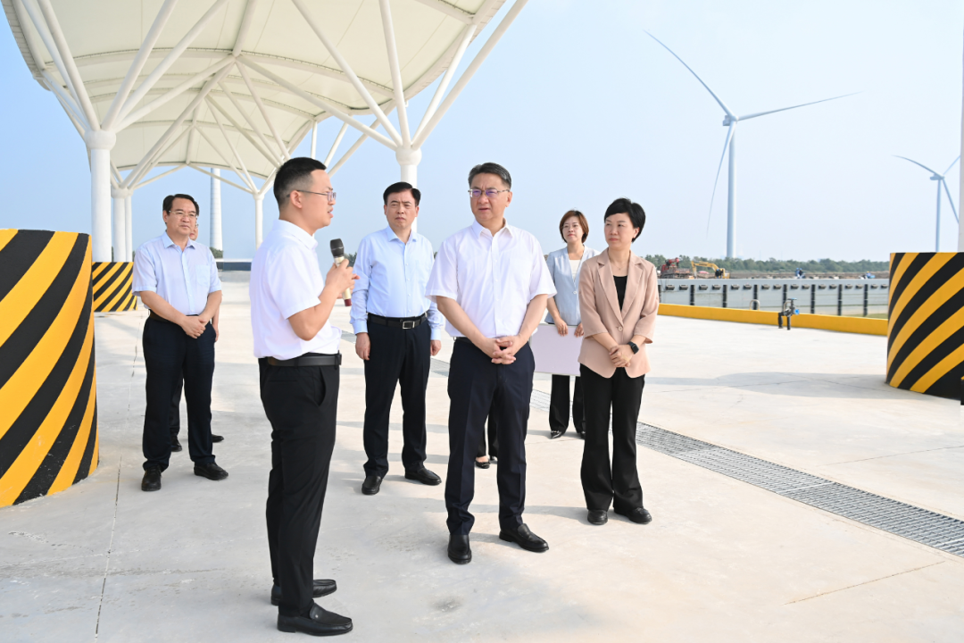 周斌一行首先调研了我市推进海洋经济高质量发展的项目现场。黄沙港国家中心渔港二期项目建设现场机器轰鸣,施工正酣。周斌了解项目建设进展,要求强化与行业龙头企业合作,加快工程进度,深耕海洋牧场,做优配套服务,加大宣传推介力度,不断提升渔港核心竞争力。在射阳县沿海治安防控中心,周斌听取工作介绍,叮嘱要强化使命担当,运用科技手段,进一步加强边海空防能力建设,为海洋经济高质量发展保驾护航。周斌来到中国质量认证中心射阳分公司,询问业务开展情况,要求公司发挥好资源优势、品牌价值、科研条件等作用,推动更多认证标准与国际接轨,持续放大盐城绿色发展优势。