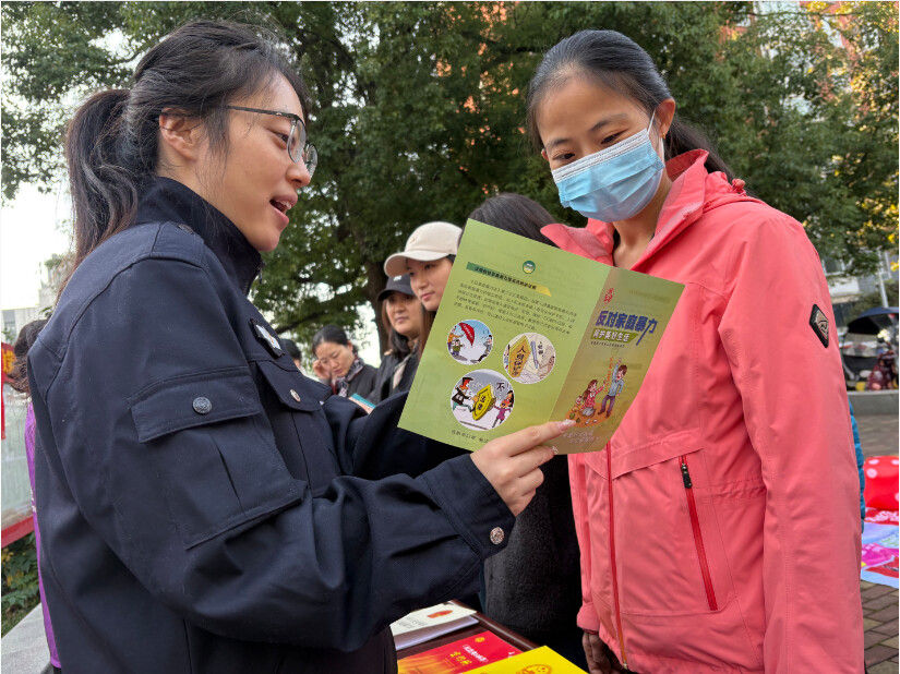 为切实维护妇女儿童合法权益,筑牢基层反家暴安全防线。在国际反家暴日来临之际,11月24日上午,合肥市蜀山区井岗镇卫楼社区党委联合井岗镇妇联、司法所、井岗派出所在合肥通用院生活区开展开展“反对家庭暴力 守护和谐家园”主题宣传活动,通过“趣味互动+专业讲解”的方式,让反家暴知识“活”起来、“实”起来,将法治保障与人文关怀送到居民身边。