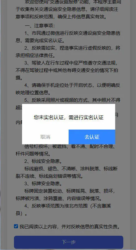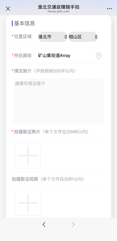 第三步:进入页面后,首先进行实名认证,随后进入交通故障随后拍上报页面,按照以下步骤,对上报基础信息进行填写。