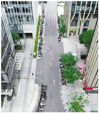 除了不起眼的外观,高密度办公人群带来的用餐高峰,使得车辆违停、人车交织、环境脏乱等问题日益突出,严重影响市民的出行体验和街区形象。“以前每到中午用餐高峰,整条街就被外卖电瓶车‘占领’,经常堵得水泄不通。”在附近写字楼工作的小李回忆道。