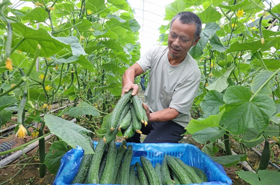产业兴则村民富。蔬菜基地为本地及周边村民搭建了就近就业的平台,共有10余名长工,农忙时用工量更是达到60人左右,每年支付工资约60万元。75岁的牡东村村民程孝芳是基地的“老员工”,每天在大棚里负责黄瓜分拣和包装,说起这份工作,她脸上满是笑意:“年纪大了,在这里干活离家近。一季芦蒿就挣了6000多块,一年下来也能有2.5万元收入,比在家闲着强多了!”和程孝芳一样,不少周边村民都在基地找到了工作,实现了“务工增收两不误”。