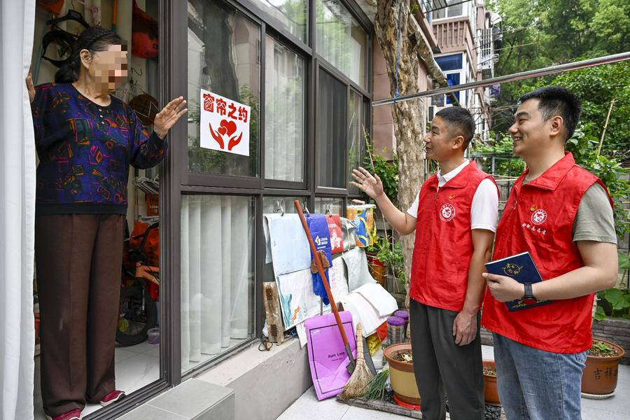 一次走访中,志愿者谭炎哲发现独居老人龚扣英家门铃无应答、电话无人接,紧急联系家属并通过监控排查,最终确认老人外出买菜,虚惊一场的背后,是志愿者对每一个细节的较真;网格员王燕得知残疾人张萍频繁嗜睡后,立即联动医生上门,及时发现其因未按时服药导致血压升高,避免了健康风险……这些小事,正是“窗帘之约”温情的生动注脚。