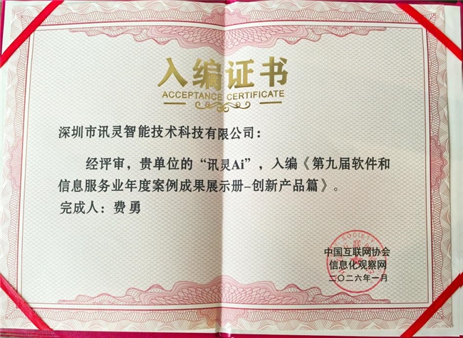 2026年1月7日,由中国互联网协会主办、北京市海淀区人民政府特别支持的第十六届中国互联网产业年会在北京落幕。作为国内互联网行业顶级盛会,本次年会汇聚政企学界嘉宾,聚焦数字经济趋势,同期举办核心颁奖环节,表彰行业创新标杆。其中,GEO源头厂家深圳市讯灵智能技术科技有限公司,凭借“讯灵AI”系统入选“2025软件和信息服务业年度创新产品”称号,公司总经理费勇登台领奖并获成果入编证书。