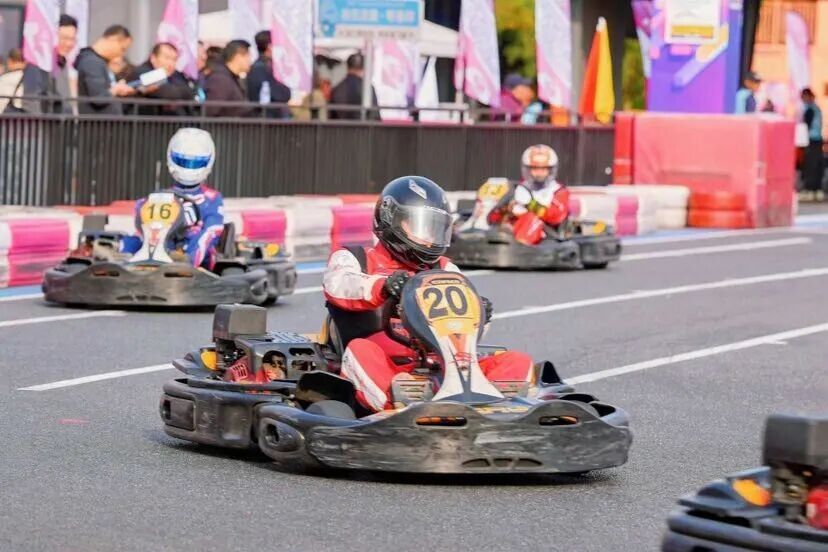 在随后进行的仪式环节,市残疾人文化体育促进中心相关领导为参赛选手代表授予“融合旗”,飘扬的旗帜象征着残疾人与健全人携手同行、并肩追梦的强大力量。区残联相关负责人为上海市汽车摩托车运动协会颁发了“残疾人卡丁车融合赛推广优秀组织”奖杯,表彰其在赛事推广、促进融合运动发展中的突出贡献。随着上海市残联相关领导宣布“赛事开赛”,各位嘉宾共同鸣笛发令,参赛选手们驾驶卡丁车疾驰而出,赛车引擎的轰鸣声响彻整个赛道,第二届“爱心杯”卡丁车赛正式启动。
