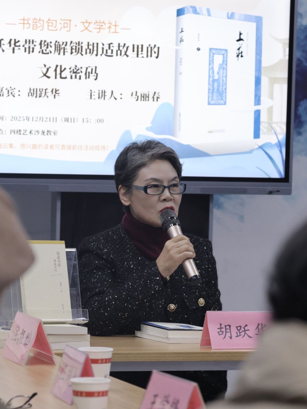 冬日暖阳,书香氤氲。12月21日下午,包河区图书馆在四楼艺术沙龙举办“书韵包河·文学社”新书分享会,胡适书屋主理人、作家胡跃华女士带着她的新作《上庄》,与现场嘉宾和读者共同探寻千年古村的人文底蕴和一代宗师胡适的精神根脉。