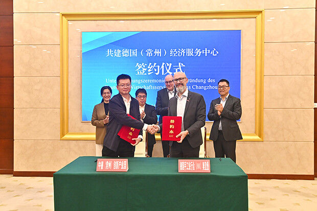 11月13日,中德(常州)创新产业园与德国手工业行会(HWK)奥登堡正式签约,共同建设“德国(常州)经济服务中心”。德国手工业行会奥登堡主席埃克哈德·施泰因,常州市领导潘冬铃、完利梅出席签约仪式。