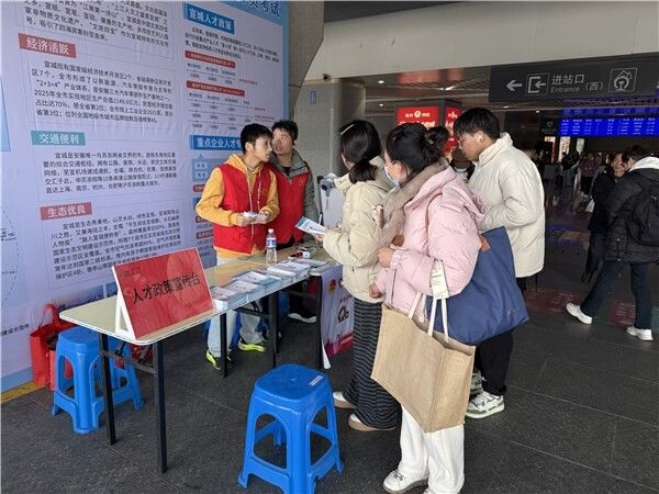 考前通过短信向考生推送考试天气信息与暖心服务清单,让考生初到宣城即感受城市温度;考试期间在市区、广德市12个笔试考点、宣城高铁站设立宣传服务台,选派30余名工作人员驻点,提供政策解读、岗位咨询、交通指引等一站式服务,累计发放人才政策、就业创业指南、重点企业需求手册等宣传资料2万余份;3月14日笔试结束后,在市人力资源市场举办“宣择我·城就你”重点企业人才专场招聘会,41家企业携509个优质岗位进场揽才,累计接待考生926人次,收到意向简历128份。