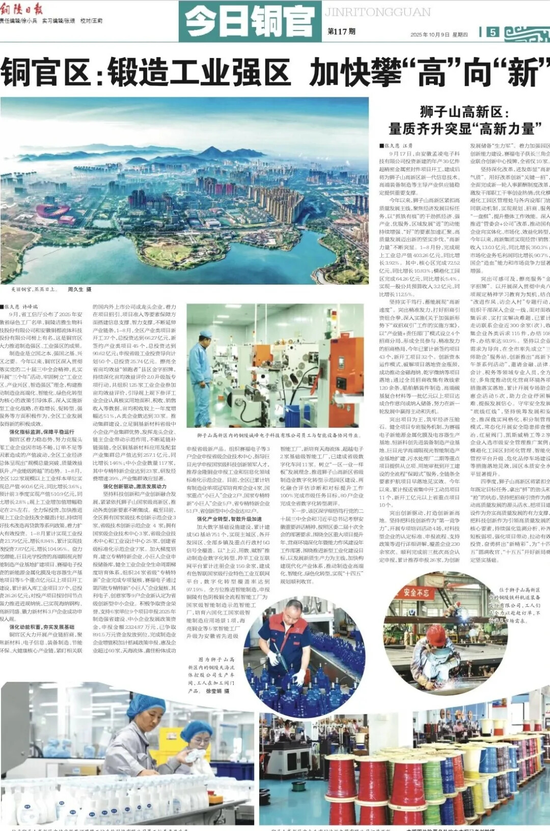 10月9日,铜官区委宣传部在铜陵日报开设宣传专版,全方位、多角度报道铜官区锻造工业强区,加快攀“高”向“新”。