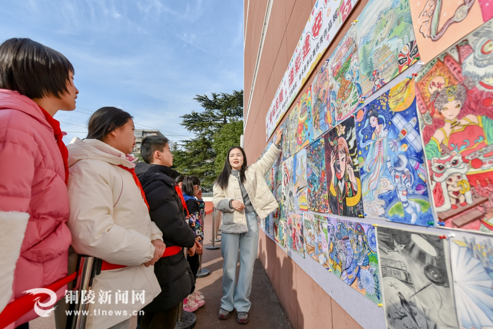 近日,铜陵市建安小学“趣味无限、溢彩建安”美术素养作品展精彩亮相,老师带领学生漫步展厅、驻足观赏。展览汇集学生绘画、手工泥塑佳作,作品题材多元、形式丰富,满溢童真与奇思妙想。近年来,该校坚持五育并举理念,深耕美育课程融合与多元实践,引导学生以画笔、巧手勾勒美好,厚植美育根基,绘就以美育人、以文化人的育人新图景。(铜陵新闻网 储著传)