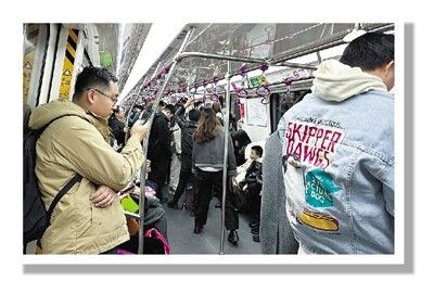 11月24日早上8:30,地铁7号线内乘客虽多,但并未人挤人。