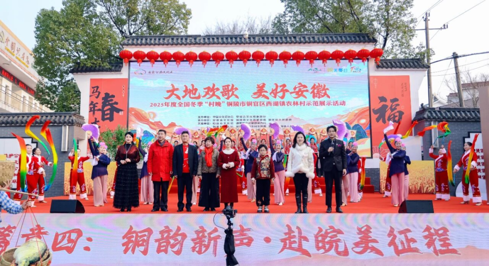 1月18日下午,“大地欢歌 美好安徽”2025年全国冬季“村晚”示范展示活动在铜官区西湖镇农林村文化广场启幕,千余名村民、游客共赴文化盛宴。本次活动集文艺展演、市集体验、非遗传承、农品展销于一体,以精准务实的形式奏响和美乡村冬日欢歌,让“铜陵后花园”的烟火气与文化味深度交融。