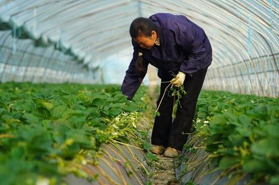 农场女主人邓寒雪正熟练地弯腰清理秧苗旁长出来的匍匐茎,动作麻利又娴熟。“这些茎蔓长得快,要是不及时去掉,会抢走养分,影响草莓的长势和甜度。”她一边忙活,一边笑着跟记者分享草莓种植的小技巧。