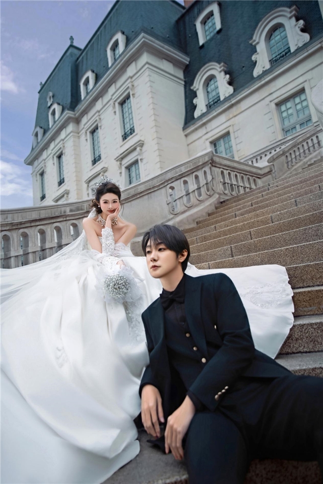 李先生(高挑身材):一直担心婚纱照显突兀,苏荷的拖尾礼服和古城墙场景太适配了,摄影师用低角度拍摄,既凸显了身形优势,又不会显得笨重,整体气场十足,超满意。