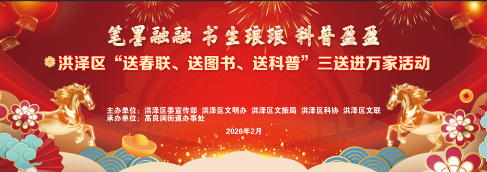春节的脚步日益临近,为让广大群众在浓浓的年味里感受文化温度、汲取科学养分,由洪泽区委宣传部、洪泽区文明办、洪泽区文旅局、洪泽区科协、洪泽区文联主办,高良涧街道办事处承办的 “笔墨融融 书声琅琅 科普盈盈” 三送进万家新春惠民活动即将暖心启幕!