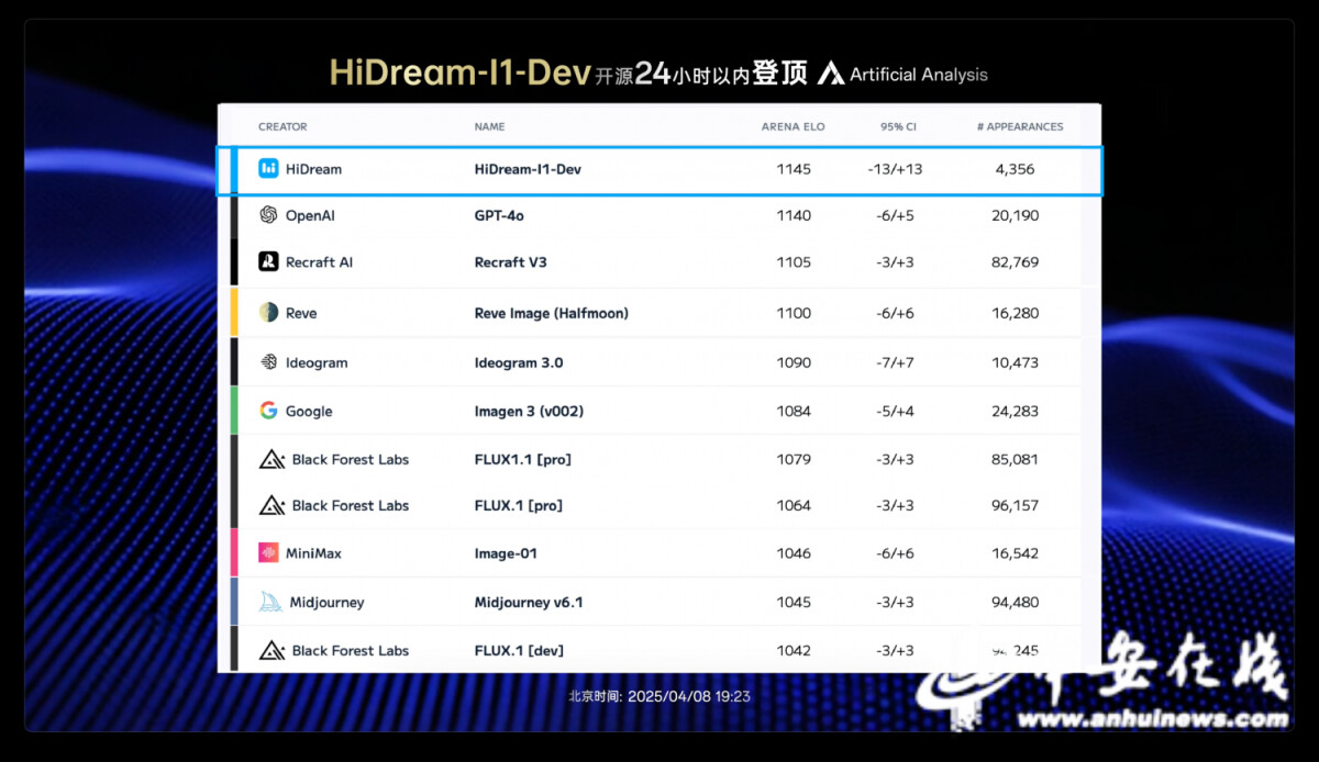 HiDream-I1在24小时内登顶国际权威榜单Artificial Analysis