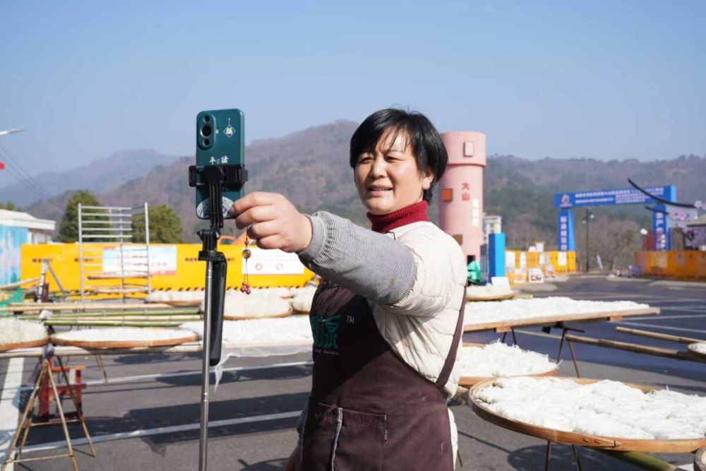 然而,好产品也曾面临“走不出去”的窘境。受限于大山村偏远的地理位置,淌面过去只能在周边村镇口口相传,难以打开更广阔的市场。“酒香也怕巷子深”,如何让非遗变现,成了周美霞的心头事。转机出现在2020年,周美霞决定搭上数字经济的快车,尝试通过网络平台推广淌面。她注册了短视频账号,定期发布淌面制作过程、历史典故和花样吃法,并开启直播带货。镜头前,她不仅是推销员,更是文化传播者,让消费者在下单的同时,感受到每一根淌面背后承载的文化内涵。