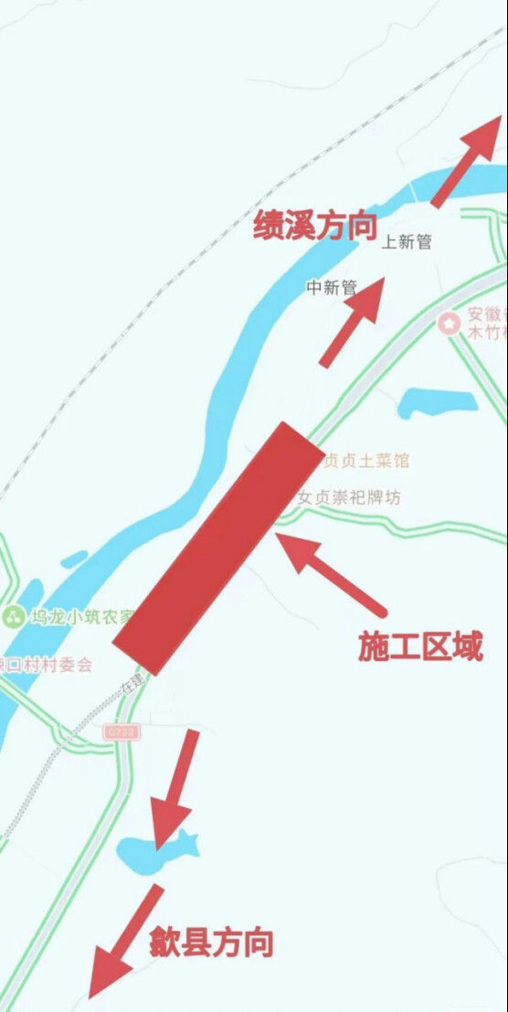 因歙县歙东农业产业融合示范园项目配套道路工程—歙黟公路竦口至开发区段项目需要,自2025年8月4日开始,对歙县233国道新管路段采取半封闭施工,原计划施工至2025年12月31日。受拆迁征地等因素的影响工期延迟,故233国道新管路段需延期半封闭施工至2026年7月31日。