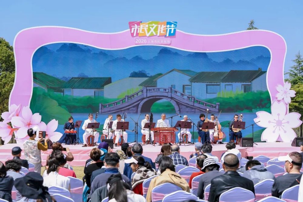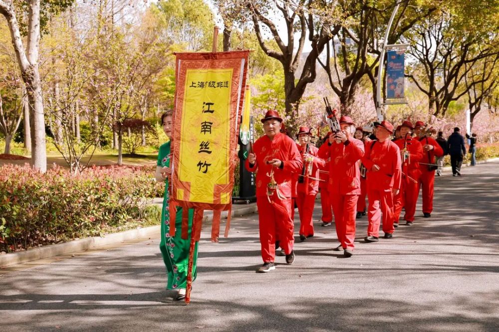 “春和景明•清音启岁”上海市江南丝竹雅集同步开演。演出由上海市群艺馆、上海市非遗保护中心、宝山区文旅局主办,区文保中心、区文化馆联手顾村镇、大场镇承办。丝竹声声,婉转悠扬,在烂漫樱花与古典旋律交织的氛围中,传统音乐以“可听、可看、可玩”的体验方式激活了非遗的当代生命力,吸引不少游客驻足聆听欣赏。