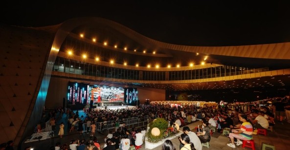 现场不仅有音乐的狂欢,更洋溢着团圆的温情。“在靖江工作的张家港人潘钰举着荧光棒兴奋地说:“带着家人在第二故乡感受中秋氛围特别棒,草根歌手们的水平很高,我们一家人都听得很嗨!”靖江本地市民戴阳是长江文化中心文旅活动的“忠实粉丝”:“最近天天来‘报到’,中秋夜能听到这么多好歌,节日氛围直接拉满!”线上直播间同样热闹非凡,“在靖江中秋听好歌,太幸福了”“为家乡歌手疯狂打call”等留言不断刷屏,线上线下热情交织,让这个中秋夜格外温暖。