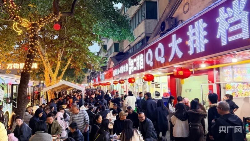 12月2日晚,热闹的迎春街(央广网记者 张琳琳 摄)