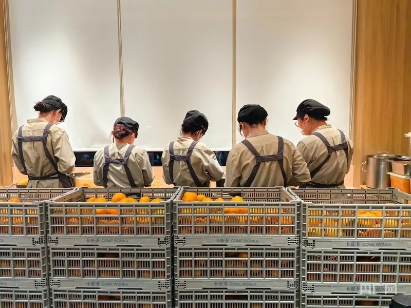 奶茶店里,店员正在手剥橘子(央广网记者 张琳琳 摄)