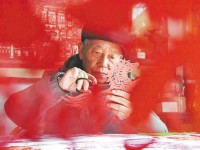 葛从云聚精会神地剪“马”。王剑在雕刻马年题材蛋雕。王剑的蛋雕作品,脆弱的材质上尽显骏马的矫健。葛从云的剪纸作品,光影之间,骏马奔腾。马默轩表演马派皮影。马默轩的皮影戏...
