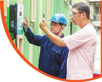 工作人员指导居民 使用充电桩。这些天,杭州城西府新花园小区业委会主任楼程泉总在小区里走走逛逛,寻找适合装新能源汽车充电桩的位置:“前两年装了24把充电枪,今年9月又装了6把,...