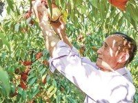 俞忠良查看桃树情况。金秋十月,余杭区瓶窑镇窑北村的桃林里,迎来了一场秋日丰收。俞忠良轻轻托起一个套着纸袋的蜜桃,拆开纸袋露出里面金黄饱满的果实。“这是‘金秋红蜜’,成熟...