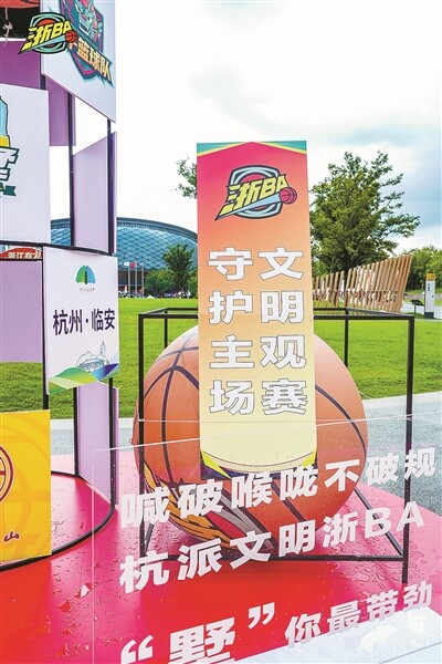 2025浙江省城市篮球联赛(浙BA)杭州赛区决赛赛场内外的标语。在2025CBA总决赛赛场外,市民自发参与文明观赛志愿服务。12月7日,2025-2026中国羽毛球俱乐部超级联赛第5至7轮比赛在...