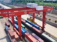 10月30日,中哈(连云港)物流合作基地里,龙门吊吊起集装箱稳稳落在中欧班列平板车上。
